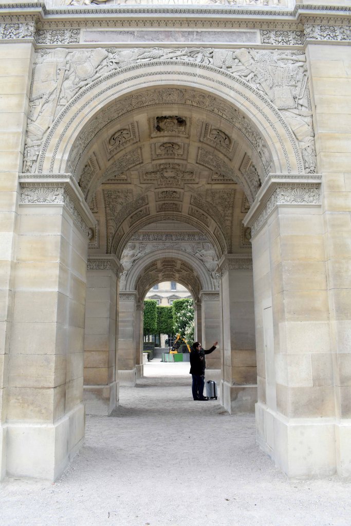 On this particular Monday the Arc was crowded. The usual tourist throng bustled to get into the Arc (to admire the view from the top of the Arc) – it is a Paris Must Do – adding to the crowd was a military commemoration ceremony for fallen Australian and New Zealand soldiers. (A squad of machine-toting soldiers kept the crowd to the back and sides of the arch).