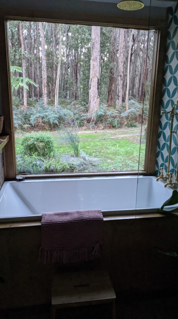 Sometime baths can be problematic. At a Victorian Airbnb farm stay, the bath had a forest view picture window – but was fed by a rainwater tank so it felt like you were bathing in a large cup of weak tea.