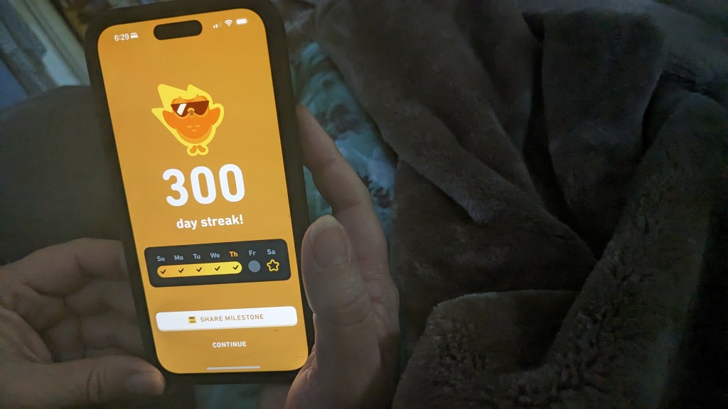 January 23, 2023: Fran discovers that the Diamond League in Duolingo is the highest of highest league. It’s only for serious players. There is nowhere else to go.