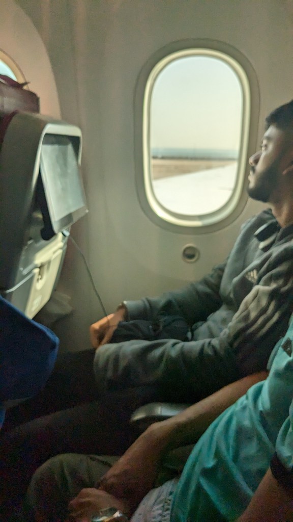 The flight to Doha is called. We went to queue up. I held our place in the long snaking line, while Fran slipped away to the nearest toilet to put on her compression socks for the 14-hour flight.
