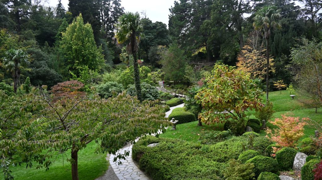 “Here you will find a Pagoda and a trickling stream under oriental Japanese bridges. The next circle is marked by a ring of Chinese Fortune Palms, which have been cultivated in China and Japan for thousands of years and were first brought to Europe in 1830.