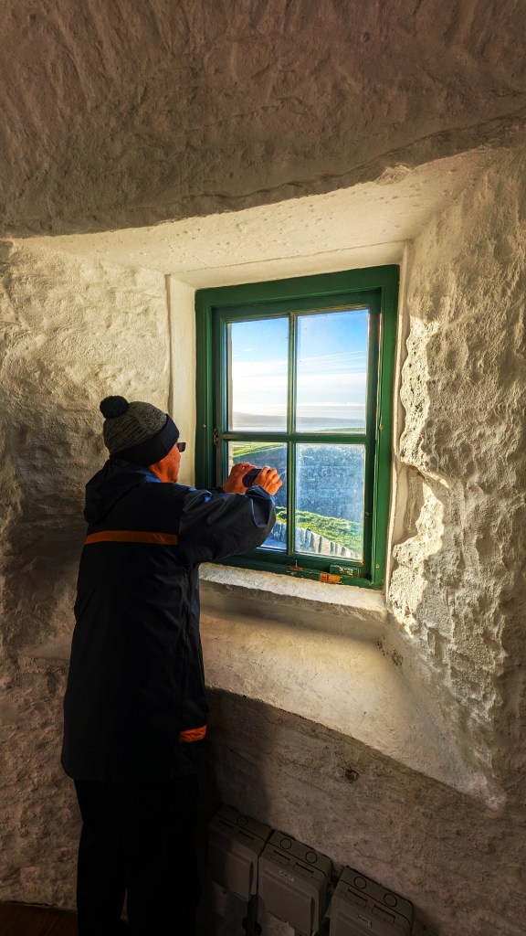 It’s a valid point: Dawn or dusk? In my time in Ireland, morning is usually the best – the sun has a chance to sneak under any cloud cover. A clear, bright morning is no guarantee of clear evening for a sunset at sea. The weather could change, a sea mist could develop … we considered ourselves to see the cliffs on a bright day, and while it was almost deserted. As it turned out, on the morning we visited, the weather changed and cliffs that afternoon (I suspect) would be shrouded in mist.