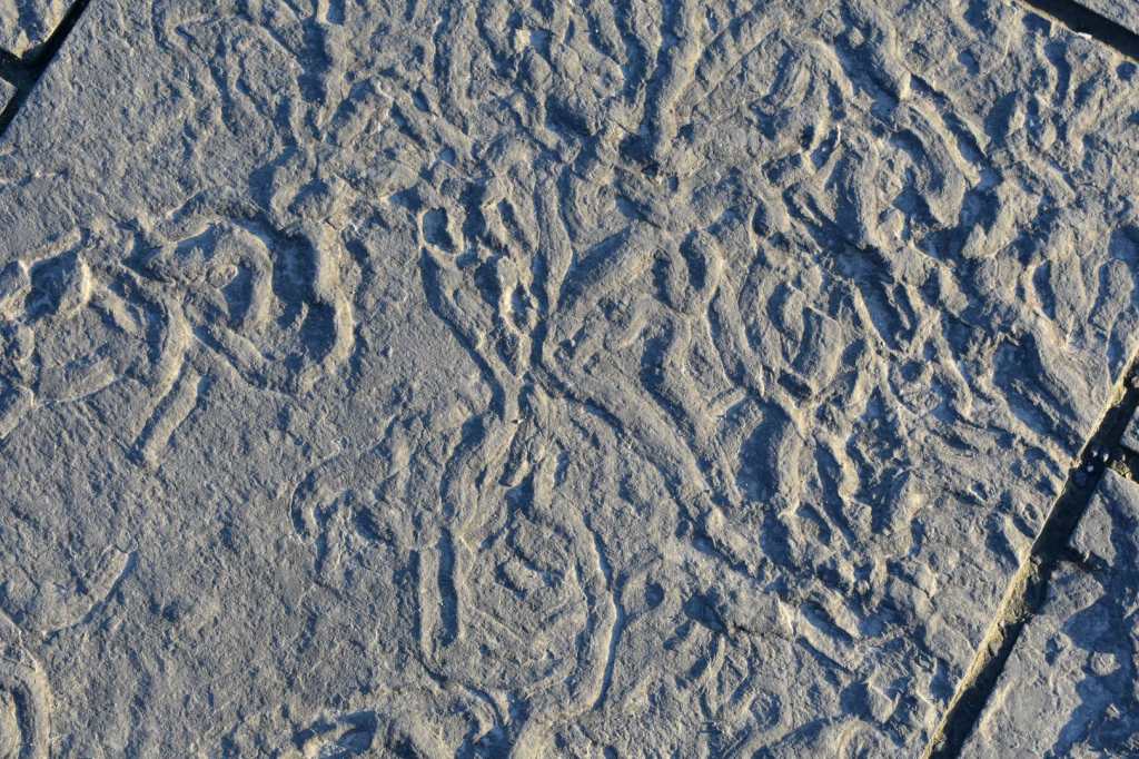 “The typical squiggly patterns on many of the walls and pavements along the cliffs are the remains of the burrows of organisms that lived in the shallow mudflats at the edge of the ancient sea. The creature that formed them has yet to be discovered.