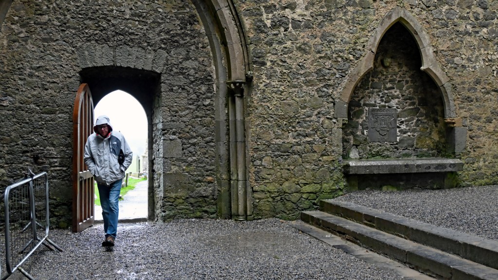 The guided tour of the site was interesting, worthwhile … but with a storm raging we were forced to sprint for shelter across the mostly-exposed site. The Rock of Cashel would have been a fantastic place to view the surrounding countryside, Storm Babette meant that panorama was impossible to see.