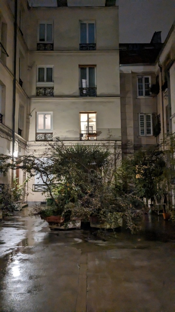 As we rode the taxi into Paris, I reflected about all the times I had arrived in the French capital – by train, by bus, metro … this was a first for me, I was arriving by car. Very swish! We relaxed and let the driver navigate the Friday afternoon rush hour traffic, as night fell the rain rolled in so did the rain. Getting a taxi was good decision, Fran and I were dropped outside our Airbnb accommodation and so avoided a crowded Metro and walking the streets of Paris in the rain.