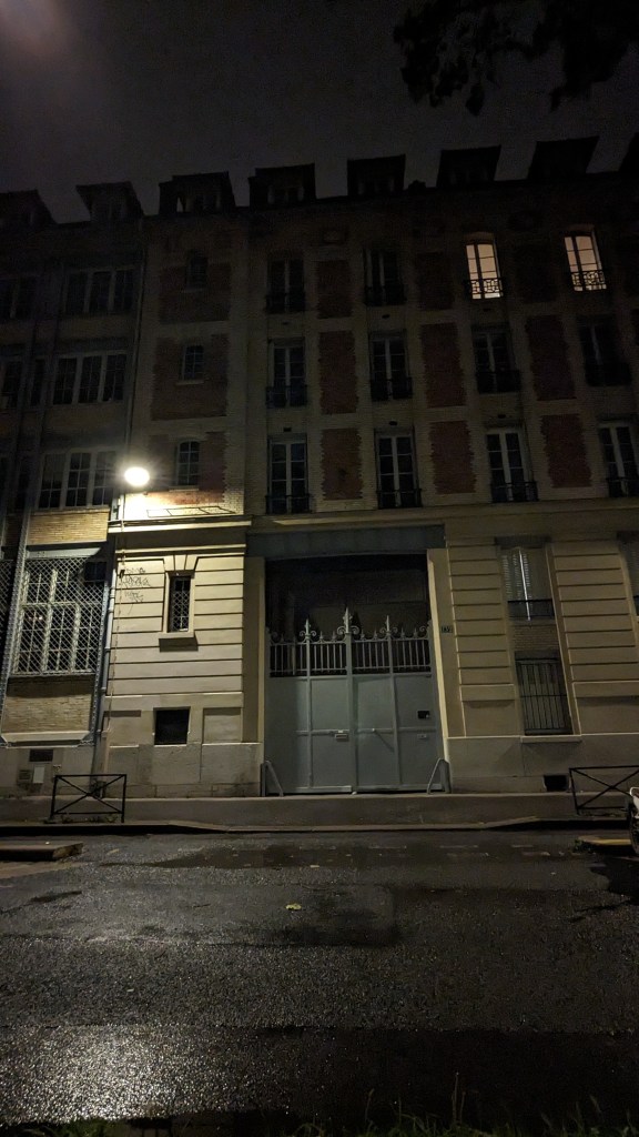 Earlier the taxi had dropped us to our apartment in Canal St Martin (in the somewhat unfashionable 10th arrondissement). It had taken about an hour from Orly in the Friday evening traffic. We were welcomed by our Airbnb host and got – in French/English – a tour of the large apartment.