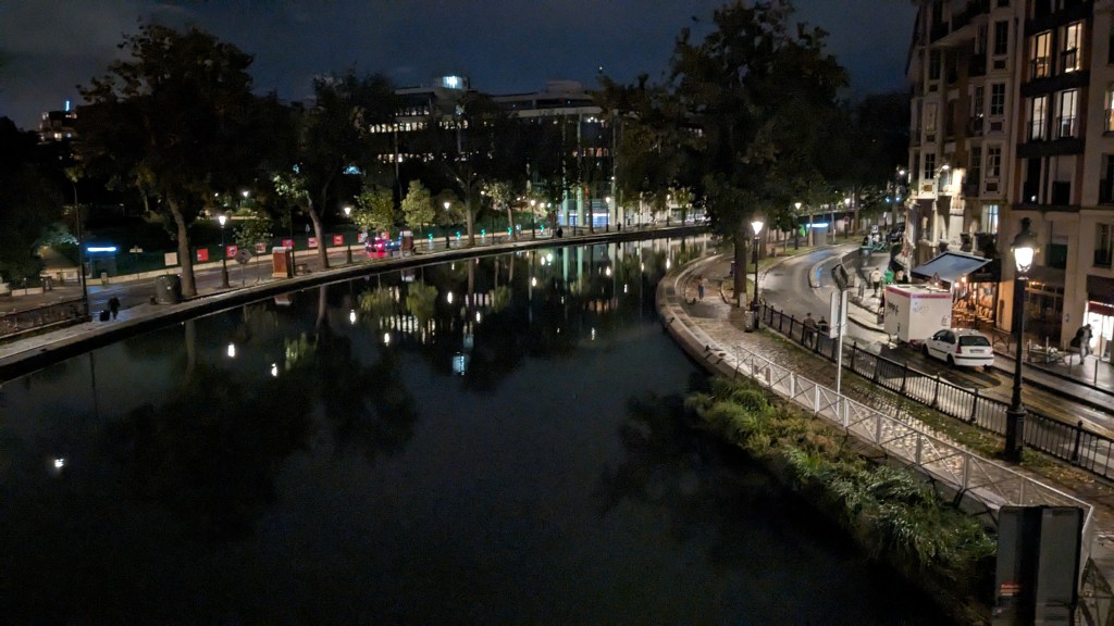 On a Friday night in autumn 2023, we walked by the canal enjoying the cool evening and marveling at our return to Paris. Ahead of us were blue and red flashing lights on a bridge over the canal, it was close to bars and restaurants.