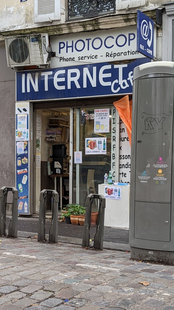 (Footnote: After a few Happy Hour drinks, we decided to stay for dinner. I had the cheeseburger, chips and salad. Fran had the pizza, couldn’t finish it and somehow managed to get the café to give her a doggy bag to go. We stopped for more beer and wine at the local Franprix and retreated to the Airbnb to watch Netflix until late in the night. Steps: 21,700.)