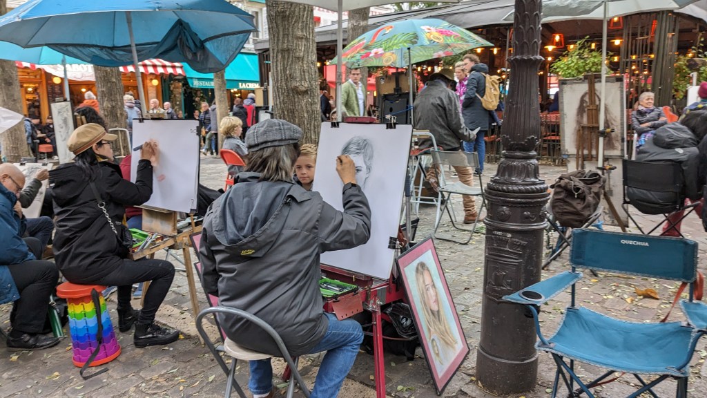 In spite of what you might think (because of the sheer number of artists working on the square), it’s actually pretty hard to become a painter on Place du Tertre. There are a limited number of places, which are set by the local town hall, according to one guide website solosophie.com.