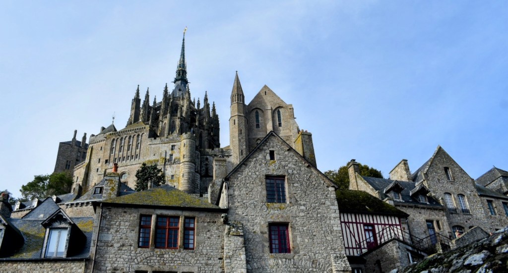 The commune’s position — on an island just a few hundred metres from land — made it accessible at low tide to the many pilgrims to its abbey, and defensible as the incoming tide stranded, drove off, or drowned would-be assailants.